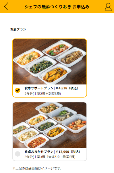 食卓おまかせプラン(主菜3品+副菜6品、約4人前×3食分)から選択