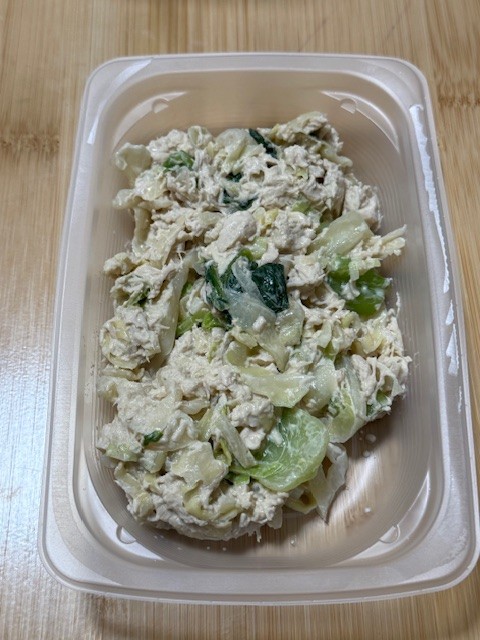 少し自分の分だけはマヨネーズを足して食べたがおいしかった。野菜の食感がしっかり残っていて箸休めの副菜としてはかなり良い。